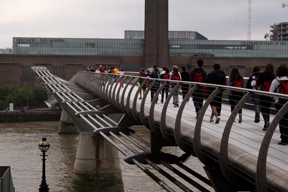 The Millennium Bridge, the one destroyed in the sixth Harry Potter movie. It’s right near the Shakespeare Globe Theater, pretty much the only thing I cared about seeing.